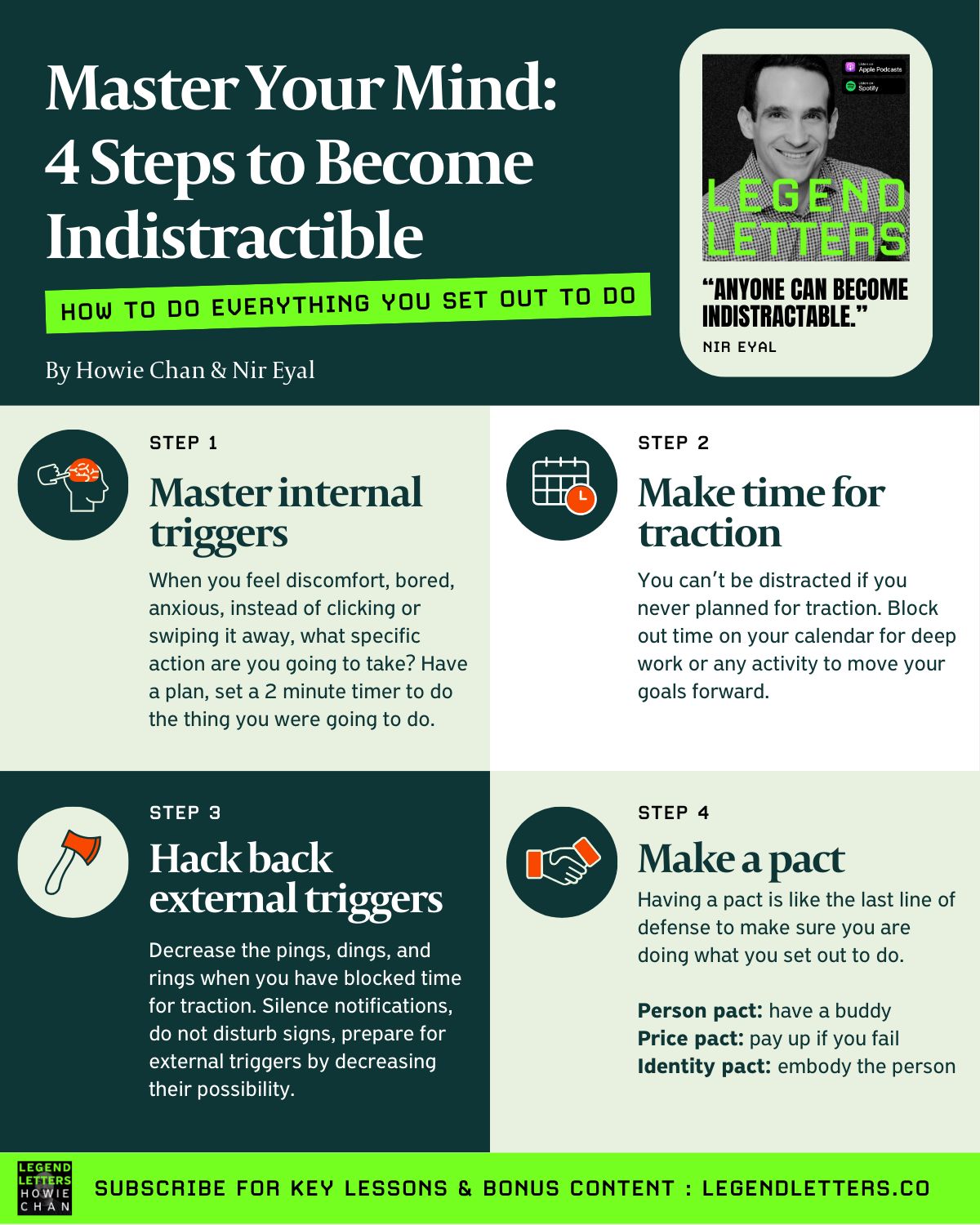 1/ Master internal triggers: 90% of distraction is internal. When you feel bored, fatigued, stressed, the first thing your mind will tell you is to scroll it away, eat it away, click it away. Instead, have a plan, set a timer or use a mantra “This is what it feels like to get better.”